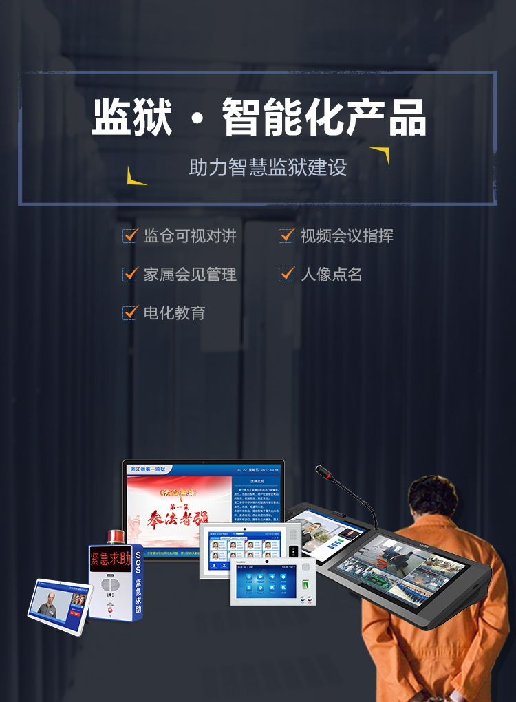 整合監獄五大子系統,具有監倉可視對講、家屬會見管理、人像點名、電化教育等,為監獄提供智能化一體解決方案。